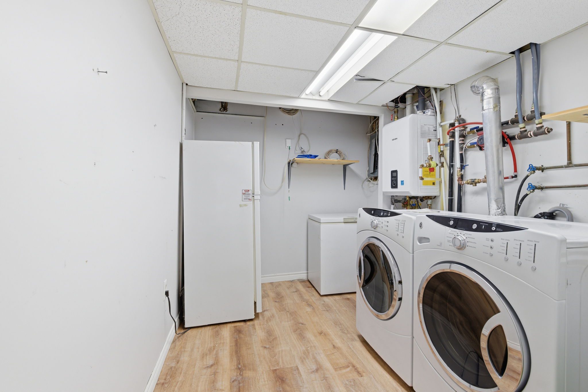Beautiful residence where the modern meets classic charm. The bright main floor features high ceilings, hardwood floors, and a kitchen equipped with appliances and ample cabinetry. The primary bedroom comes with a spacious, mirrored closet. There is also a second large bedroom on the same level. The finished walk-out basement offers a versatile living space, perfect for a home office, recreation areaa, or gym, opening to an expansive private backyard oasis.